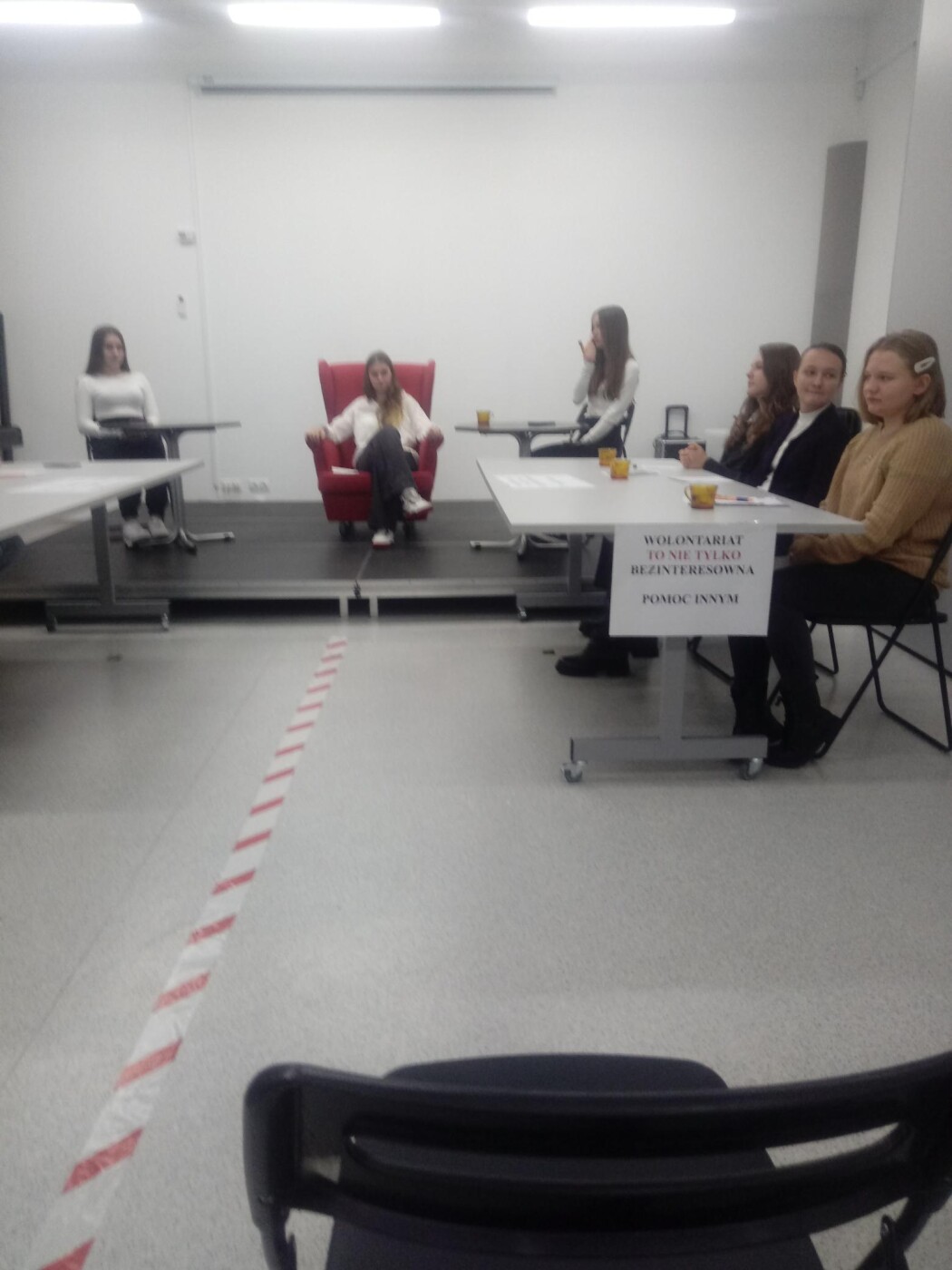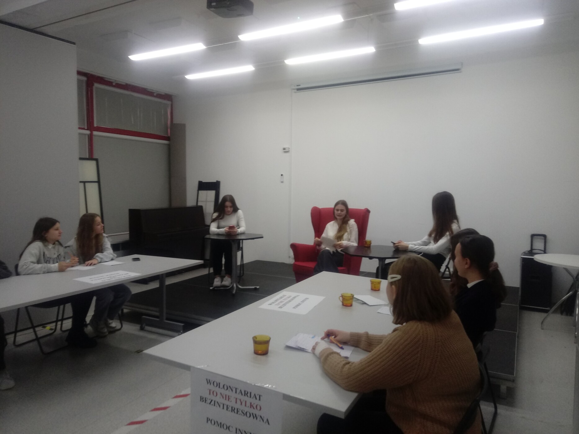 W dniu 27 listopada wolontariusze z klas 6b, 7ab i 8a uczestniczyli w debacie zorganizowanej w filii Wawerskiego Centrum Kultury w Marysinie. Teza: Wolontariat to bezinteresowna pomoc innym. Koordynatorem projektu realizowanego w WCK również w zeszłym roku, jest p. Ewa Adrearczyk. Uczniowie podzieleni zostali na dwie grupy:
