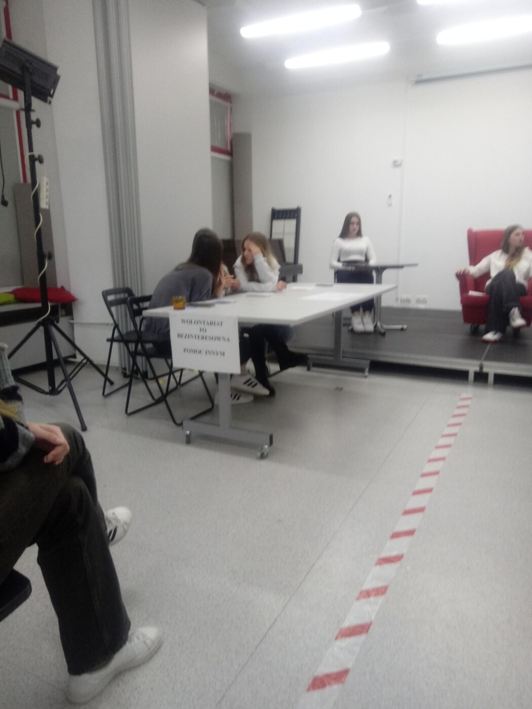 Propozycja: Wolontariat to bezinteresowna pomoc innym oraz Opozycja: Wolontariat to nie tylko bezinteresowna pomoc innym. Każda grupa w ściśle określonym czasie przedstawiła swoje argumenty za przyjętą tezą, a następnie odpowiadała na zadawane przez publiczność pytania. Pełniąca rolę Marszałkini Debaty Zuzanna z kl. 8a sprawnie zarządzała porządkiem debaty: udzielała głosu, zapraszała do stawiania pytań i rozpoczęcia obrad nad daną kwestią. Na podkreślenie zasługuje doskonałe przygotowanie merytoryczne i językowe debatujących. Podawane przykłady pochodziły nie tylko z życia szkolnego, ale i z telewizji i prasy. Dynamiki spotkaniu dodawał fakt, że widzowie mogli zmienić swoje miejsca w miarę krystalizowania się ich opinii. Na zakończenie publiczność oceniła obydwie grupy , przyznając im maksymalnie po 3 punkty. Osiągnięto remis, który świadczy o mocnym przygotowaniu obydwu stron.