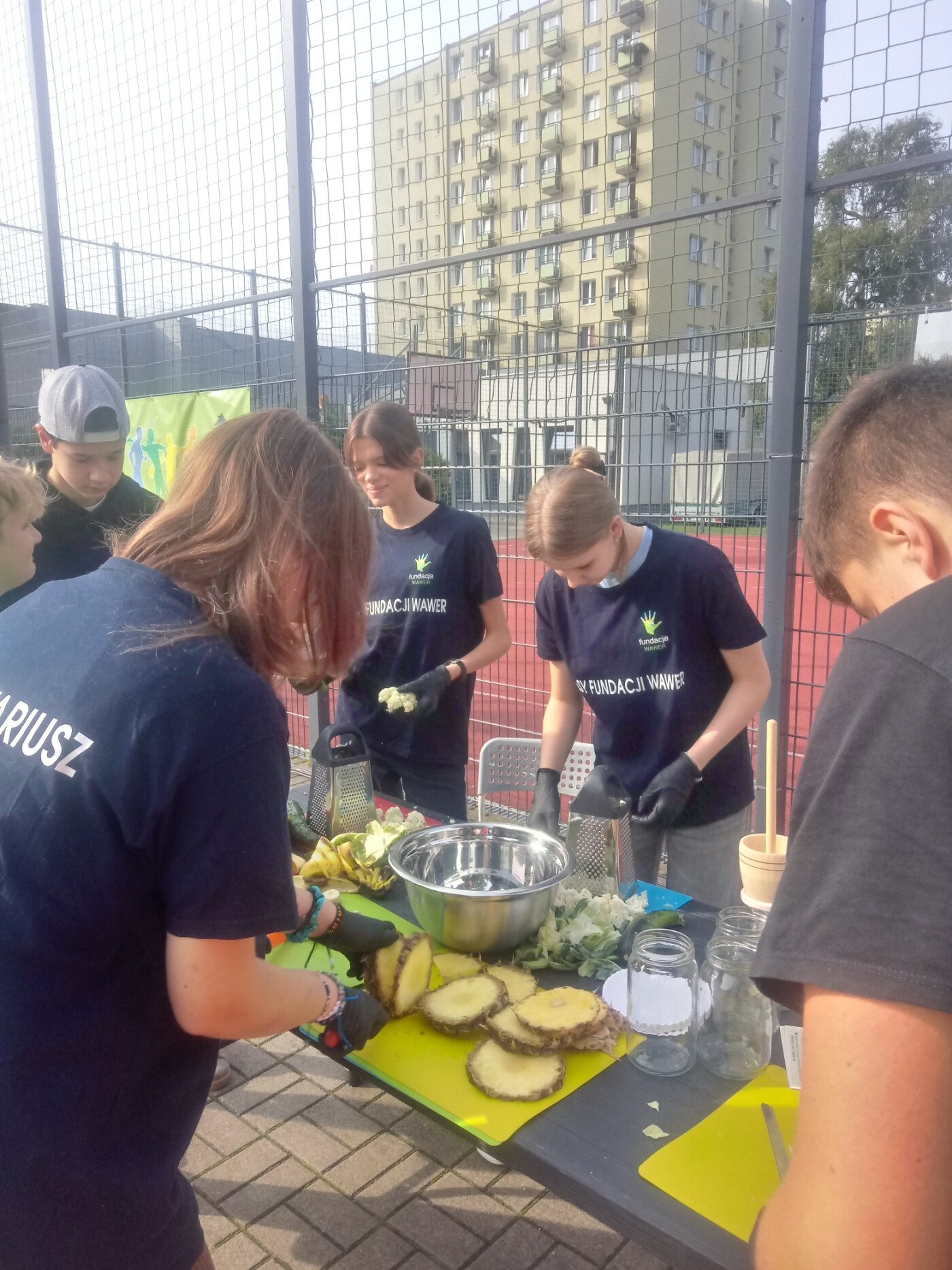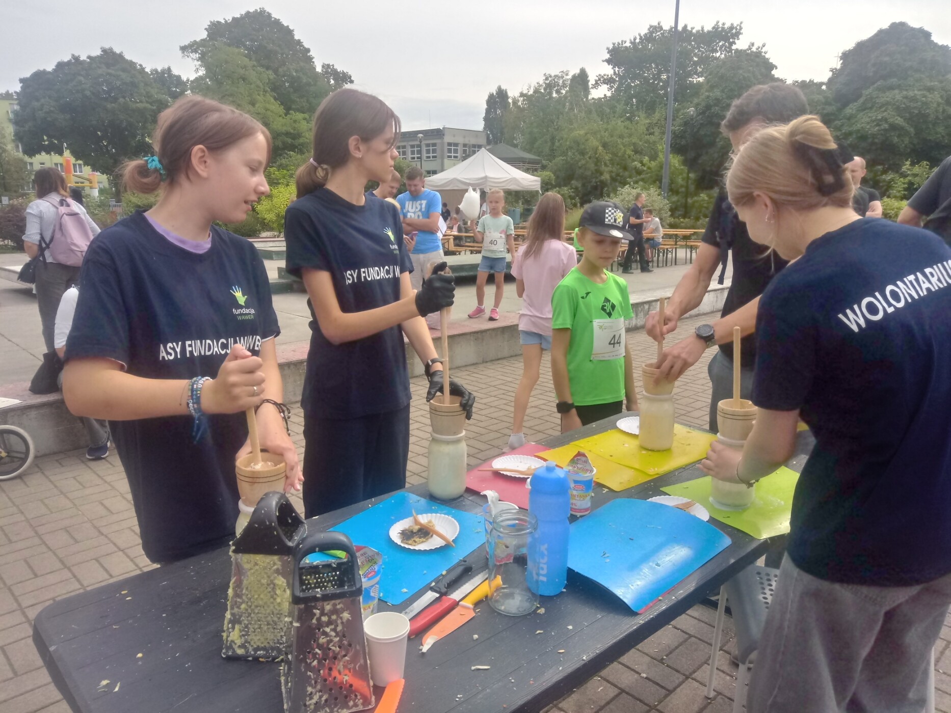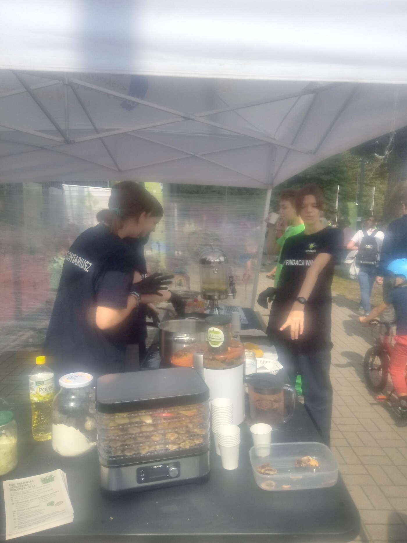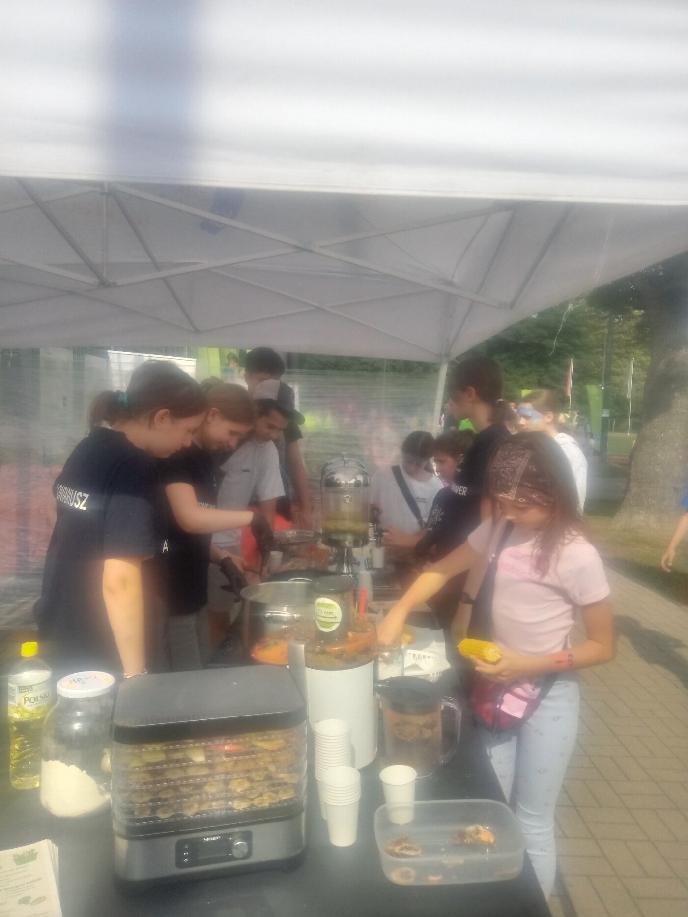 Wolontariusze mieli pełne ręce pracy: wyciskali soki z owoców krajowych i egzotycznych, ucierali cukinie, kapustę i kalafiory na placki warzywne, grillowali warzywa i grzanki, a także kroili gruszki, melony i jabłka przeznaczone do suszenia na chipsy.