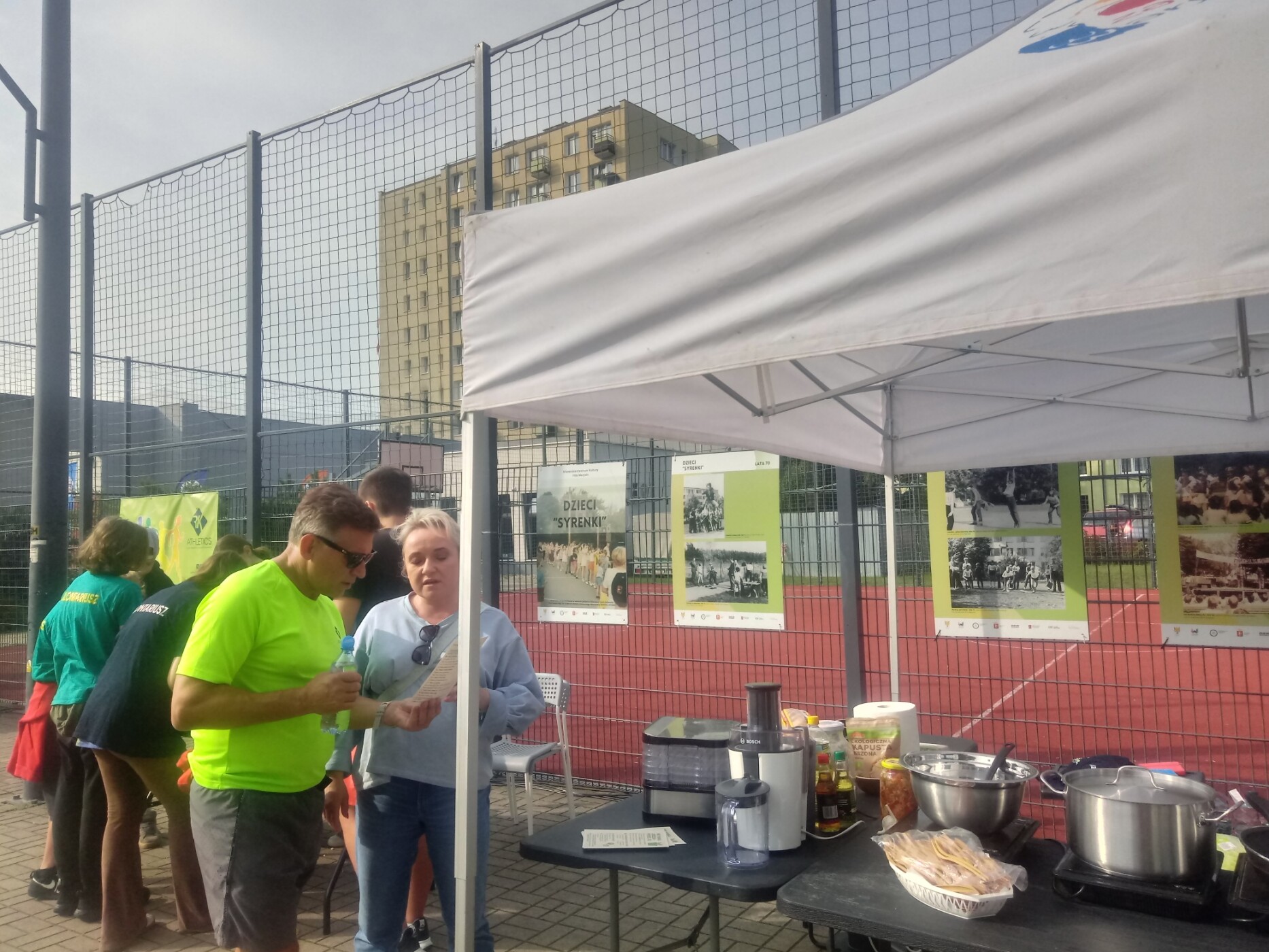 Od rana Stadion „Syrenki” tętnił życiem – wypełnił się kibicami i zawodnikami chętnymi do udziału w Mityngu Lekkoatletycznym. Nasi wolontariusze, obecni od samego rana, pomagali w przygotowaniu stoiska ze zdrową żywnością, pod czujnym okiem i z fachowym wsparciem pani Agnieszki Wójcik – Radnej Dzielnicy Wawer.